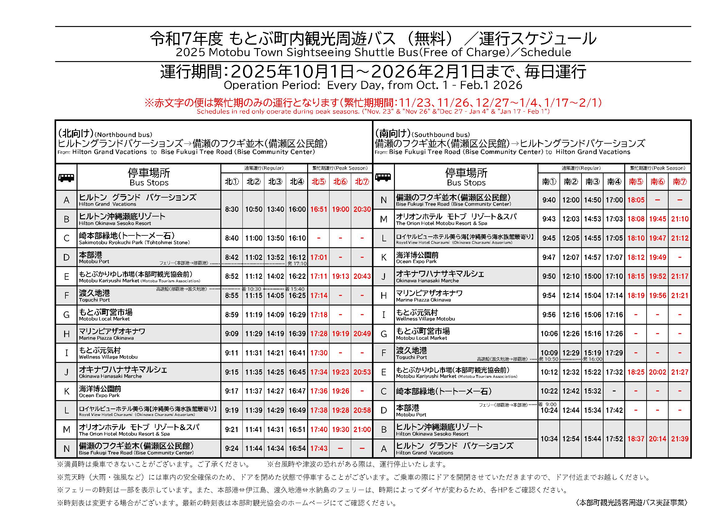 Motobu Town Sightseeing Shuttle Bus operates normally.